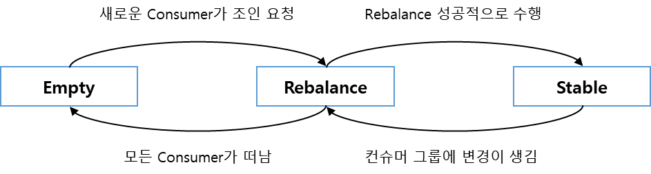 컨슈머 그룹은 Group Meta Data에 컨슈머 그룹의 상태를 저장한다. 상태는 아래 3가지와 같다.