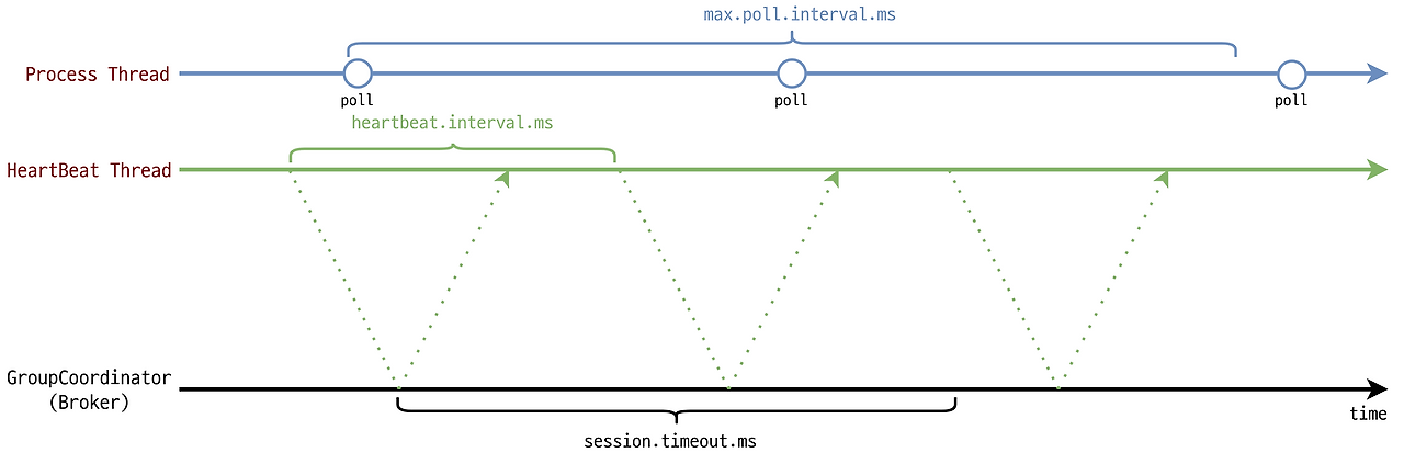 - 즉, 데이터를 프로세싱 하는 부분과 Consumer의 헬스 체크를 분리하였다. -> polling interval 과 heartbeat interval 을 분리