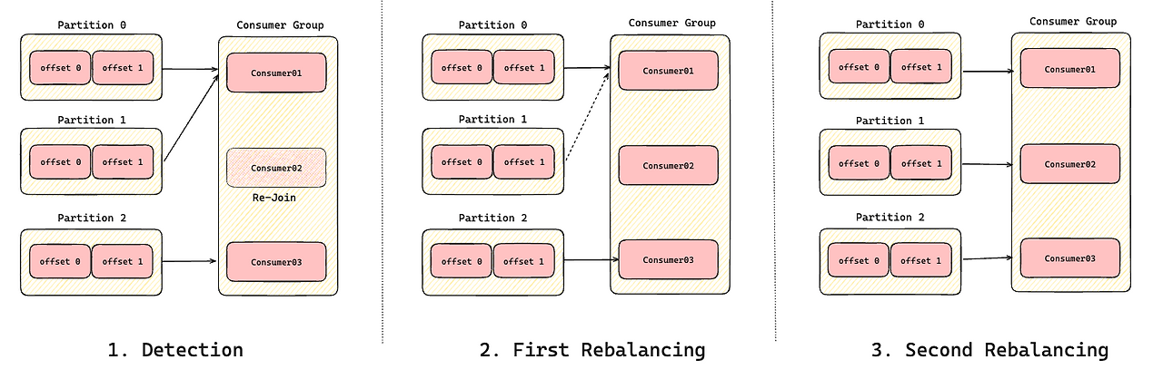 Eager 방식과 달리 전체가 중단되지 않기 때문에 효율적일 수 있지만, 파티션 할당이 안정적인 상태가 될 때 까지 몇 번의 반복 작업이 필요할 수 있다는 점을 유의해야 한다.